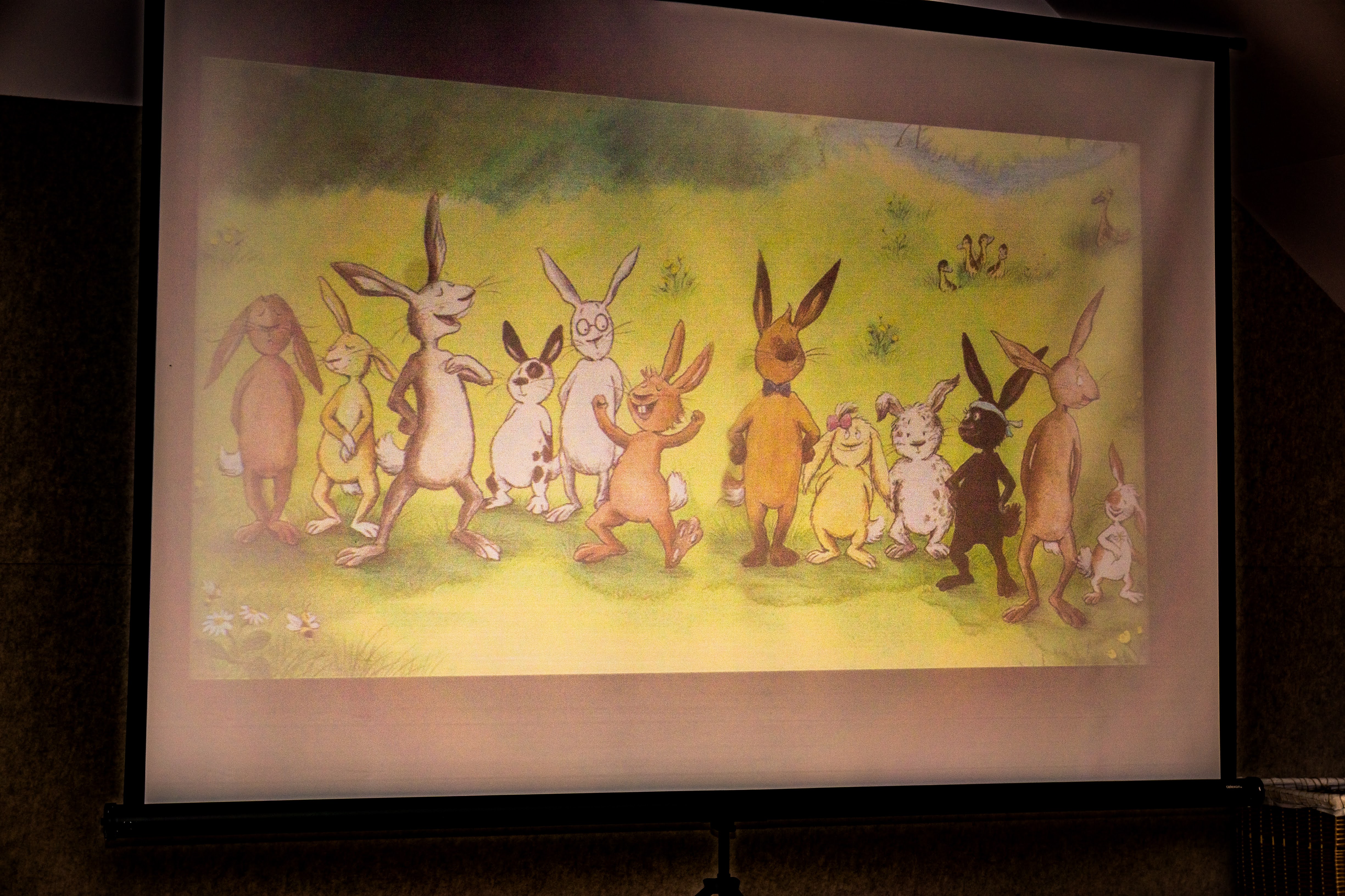 Wir begannen ihn mit einer frühlingshaften Bilderbuchgeschichte, die auf eine große Leinwand projiziert und von einer Pädagogin lebendig erzählt wurde. Die Kinder lauschten gespannt, tauchten in die Geschichte ein und ließen sich von der sanften Stimmung in den Tag tragen.