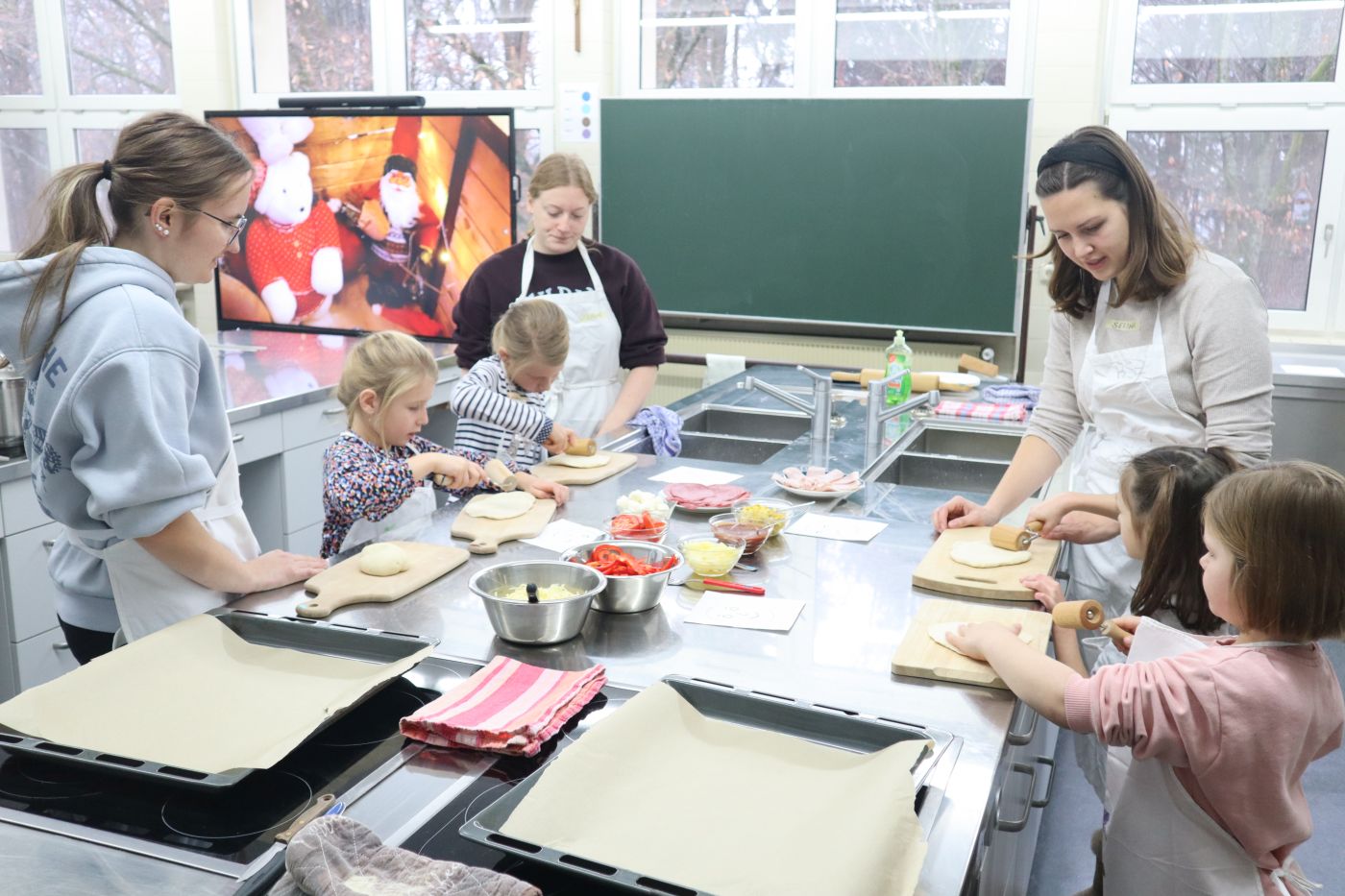 Dabei war für jeden Geschmack etwas dabei. In der Kreativwerkstatt bei Sabine Sailer stellten die Kinder Geschenke für ihre Familien selbst her, in der Küche wurden bei Kerstin Frieberger Pizza und Plätzchen gebacken, bei Ulli Schmutzer und Mäx Braun wurde mit viel Witz und Rhythmus ein lustiges Weihnachtslied einstudiert und schließlich sorgten Bewegungsspiele bei Birgit Regner für Action und strahlende Gesichter der Kinder.
