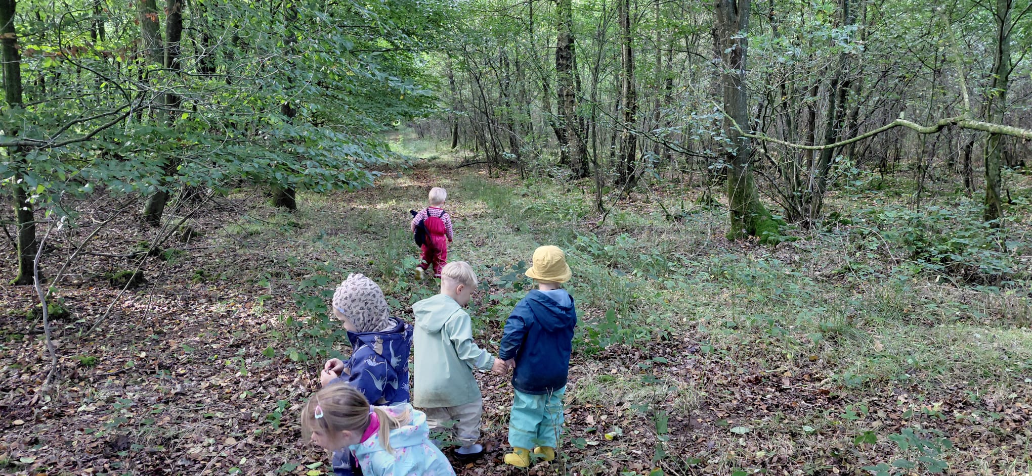 In der zweiten Septemberwoche hatten wir Waldwoche. Das Waldstück, an dem unsere Waldwoche stattfand, war sehr übersichtlich. Dort befand sich sogar ein kleines Haus mit mehreren Räumen und eingebauter Küche. Die ganze Woche über hat es sehr viel geregnet. Den Kindern wurde es draußen etwas zu kalt. Deshalb gingen wir öfter hinein, um Kreisspiele zu spielen oder am Tisch zu malen. Am Dienstag haben wir eine Tour gemacht und sind dabei an einem Golfplatz vorbeigekommen, an dem wir sogar Golfbälle gefunden haben. Am Mittwoch kam Hans, ein Naturführer, zu uns in den Wald und hat uns viel über den Wald und über Pilze erzählt. Da ich selber als Kind in einer Art Waldgruppe war, die viel Zeit draußen verbracht hat, kenne ich mich mit vielen Dingen im Wald gut aus. Hans sagte, er war froh mich dabei gehabt zu haben, da er die Begriffe meist nur auf Dänisch kannte und ich sie ins Deutsche übersetzen konnte (z.B. Pilze = Svampe, Eberesche = røn). Am Nachmittag zeigte uns Hans noch ein paar ausgestopfte „Waldbesucher“ und erzählte uns vieles über diese.